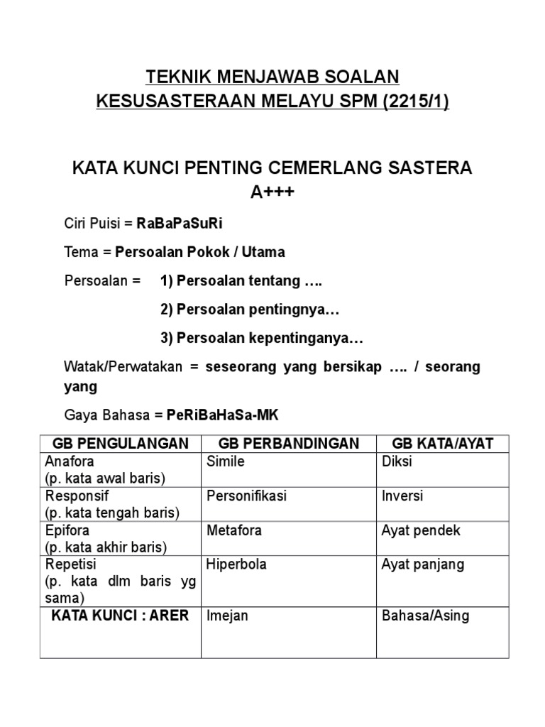 Teknik Menjawab Soalan Kesusasteraan Melayu Spm Pdf